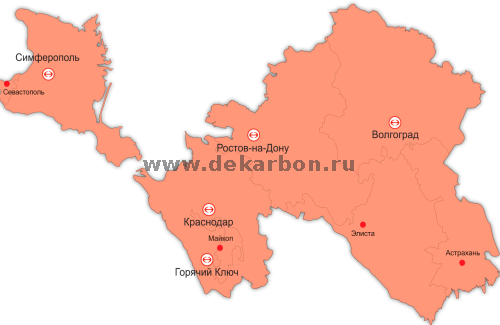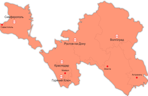 География поставок ЮФО: Краснодар, Ростов-на-Дону, Волгодонск, Таганрог, Белореченск, Майкоп, Астрахань, Михайловка, Камышин, Ахтубинск, Знаменск, Камызяк, Нариманов, Волгоград, Харабали и другие.